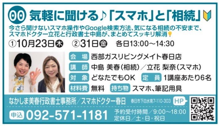 • 講師:中島美春(相続)/立花梨奈(スマホ)