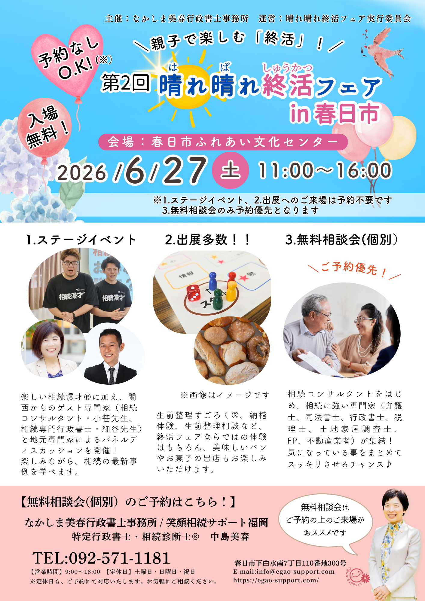 今年は地元の専門家だけでなく、関西から生前対策・相続手続きの専門家「アクセス相続センター」の相続コンサルタントの小笹みわさん、相続専門行政書士の細谷ひろたかさんにも登壇していただきます✨